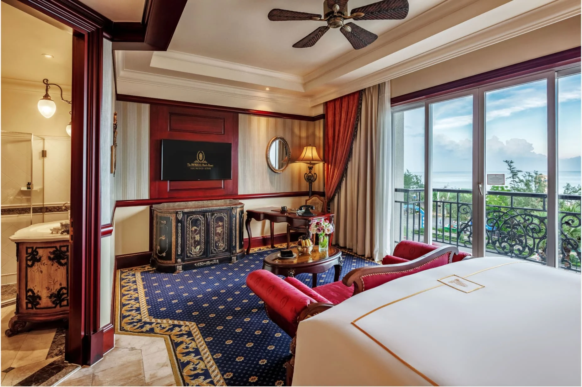 Phòng Deluxe tại THE IMPERIAL VŨNG TÀU mang phong cách sang trọng cổ điển, không gian rộng rãi, phù hợp cho kỳ nghỉ thư giãn đẳng cấp bên bờ biển Vũng Tàu.
